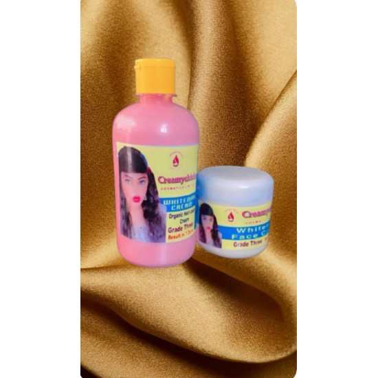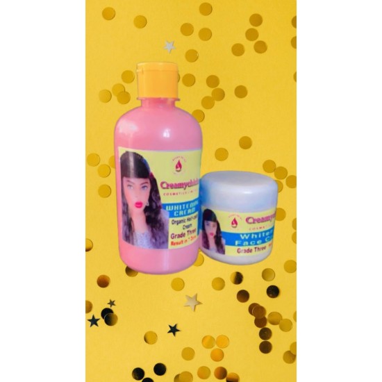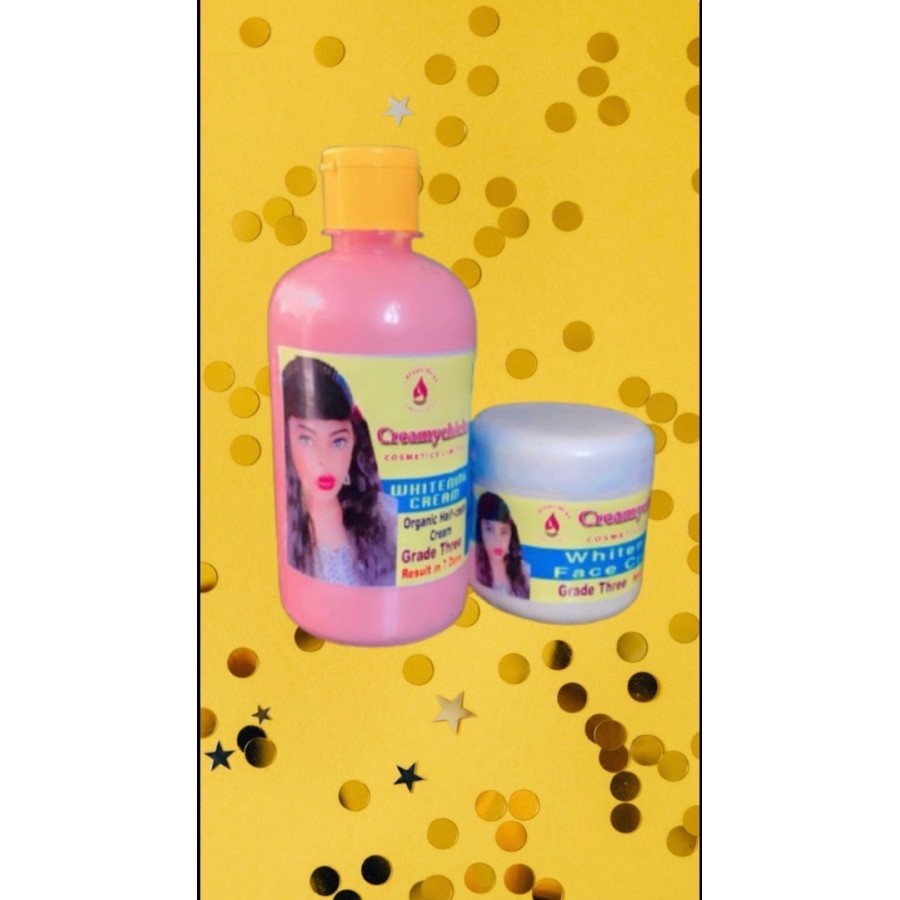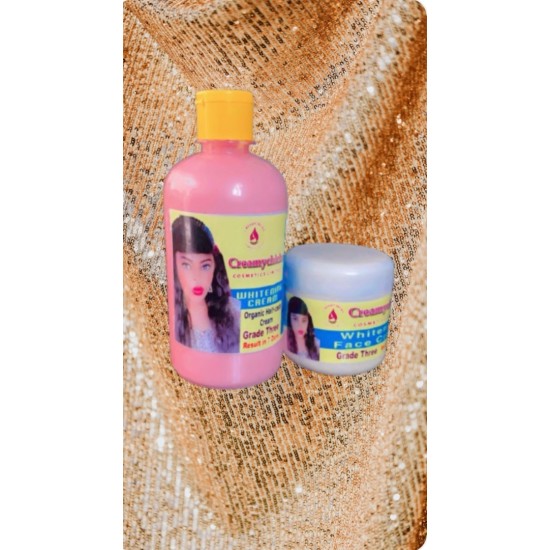 The grade 3whitening body lotion is organically formulated, it gives an even skin tone, it also give 3 shades lighter. And it works perfectly with the tomatoes extract whitening soap.